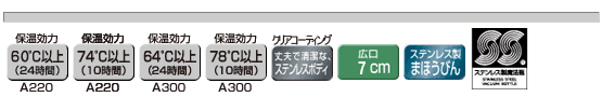 お湯を入れて10時間経っても78℃以上(※MAB-A300)の高温を保ち、また夏場は氷を入れて保冷も可能。