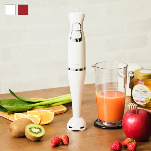 ドリテック ハンドブレンダー HM-803 2色 アイボリー レッド マルチブレンダーJANコード:アイボリー 4536117025620 / レッド 4536117025637・スピードが2段階調節できる・握りやすいハンドル・おしゃれなビンテージカラー商品サイズ:約 W59×D59×H346mm商品重量:約 607g電源コード:約 1.5m消費電力:150W定格時間:1分専用カップ容量:700ml電源:AC100V 50/60Hz【送料について】北海道、沖縄、離島は別途送料を頂きます。