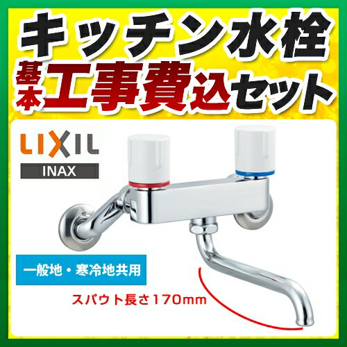 BF-WL405-KJLIXIL キッチン水栓ノルマーレSシリーズ2ハンドル混合水栓浴室水栓壁付タイプキッチン・バス兼用一般地・寒冷地共用スパウト長さ:170mm配管サイズ:13mm吐水口タイプ:整流抗菌ハンドル商品内訳(キッチン水栓) 品番:BF-WL405×1 商品内訳(【工事費】キッチン水栓) 品番:CONSTRUCTION-FC×1