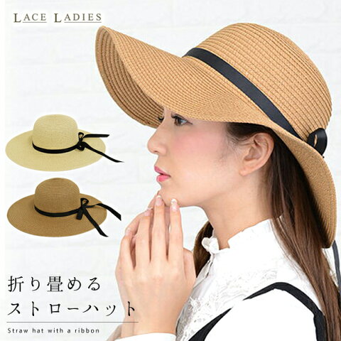 帽子 麦わら帽子 レディース UVカット帽子 uv 折りたたみ ストローハット ハット 帽子 レディース 折りたたみ 折り畳み サイズ調整可能 つば広帽子 ツバ広帽子 リボン UVカット 春【メール便送料無料】【ゆうパケット】