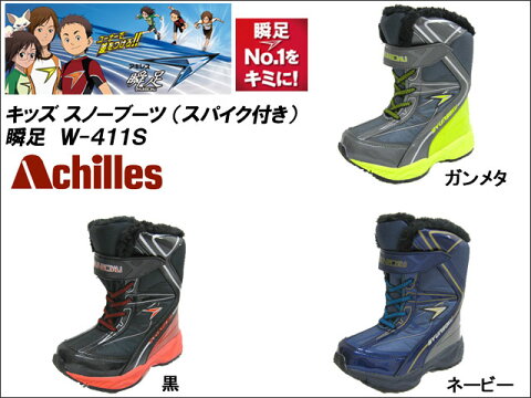 【クリアランスセール】【ポイント10倍】 キッズ&ジュニア スパイク付き スノーブーツ 瞬足 W-411S ■19cm〜24cm 【10P03Dec16】【RCP】