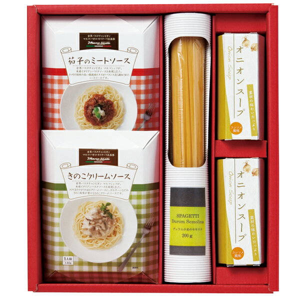 ギフト対応 ●茄子のミートソース140g×1・きのこクリームソース140g×1・スパゲッテイ200g×1・オニオンスープ(4.4g×3袋)×2●箱(ケース)サイズ約28×31.5×5.8cm●ケース種別:化粧箱入●アレルゲン【卵・乳・小麦】 ※2013/2/14商品内容がリニューアルされました。