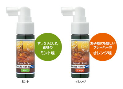 ミントはリフレッシュに最適なフレーバーで、オレンジはスプレーした瞬間にオレンジの味、その後からハチミツの味が口の中に広がるので、薬の味が苦手な方や、小さなお子様でも抵抗なく毎日使える味わいです♪